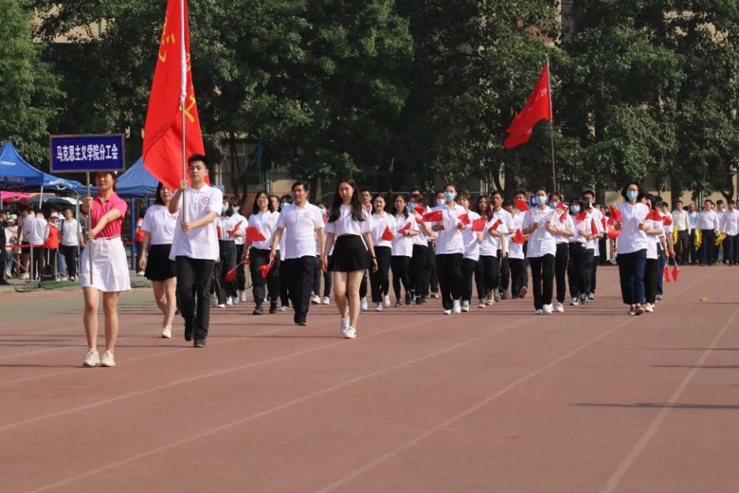 开幕式中,马克思主义学院师生组成的方阵高喊着:“马院姓马,在马言马,振兴马院,人人有责”的口号,自北向南通过主席台接受检阅,一展马院学子热情洋溢的青春风采。