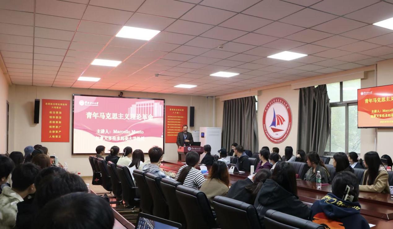讲座中,默斯托教授围绕三大核心维度展开论述:其一,以马克思、恩格斯的成长与求学环境为起点,梳理青年马克思思想转变脉络——从受古典哲学、黑格尔唯心哲学影响,到创新转向辩证唯物,同时提及恩格斯通过观察工人与乡村生活完成思想转变,二人共同以政治经济学为工具,批判资本主义并倡导社会制度变革以改善工人处境,回顾了黑格尔派争论对相关理论诞生的推动作用;其二,聚焦“批判社会需先批判宗教”,指出马克思视宗教为“人民的鸦片”,强调需从宗教与形而上学中解放以实现社会批判,突出理论结合实践及哲学是工人阶级的精神武器;其三,阐释青年马克思思想的当代价值,反对割裂青年与老年马克思的理论关联,认为认清“我们是谁”是理解马克思理论革命的关键,重申物质于意识辩证关系及资本主义变革的核心逻辑,强调马克思主义批判思维对解决现实问题、探索未来的重要指导意义。