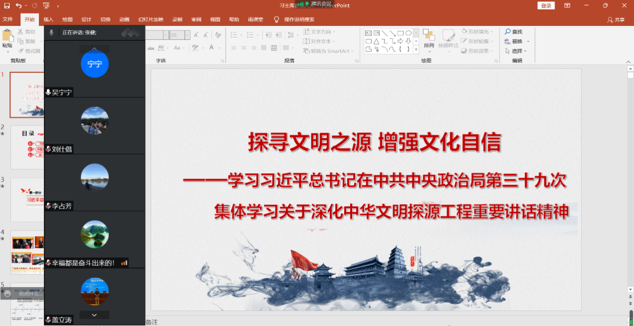 6月22日下午,马克思主义学院原理与思修党支部与外国语学院英语专业党支部、核科学与工程学院核工程第二教研室党支部、控制与计算机工程学院机器人与智能系统党支部、经济与管理学院物流师生联合党支部开展联学共建,“深入学习习近平总书记在中共中央政治局第三十九次集体学习关于深化中华文明探源工程重要讲话精神”主题党日活动,本次学习共有44名老师参加,由我院原理与思修党支部书记吴宁宁主持。