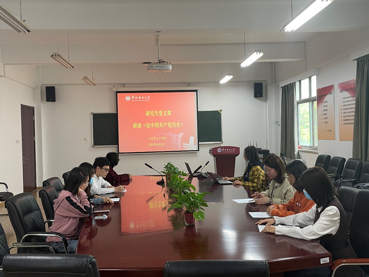 为深入学习贯彻习近平总书记在党史学习教育动员大会上的重要讲话精神,引导支部全体成员知史爱党、知史爱国,4月26日下午四点,马克思主义学院研究生党支部在教三C220召开了《论中国共产党历史》学习分享会,会议由研究生党支部书记刘彩霞主持。