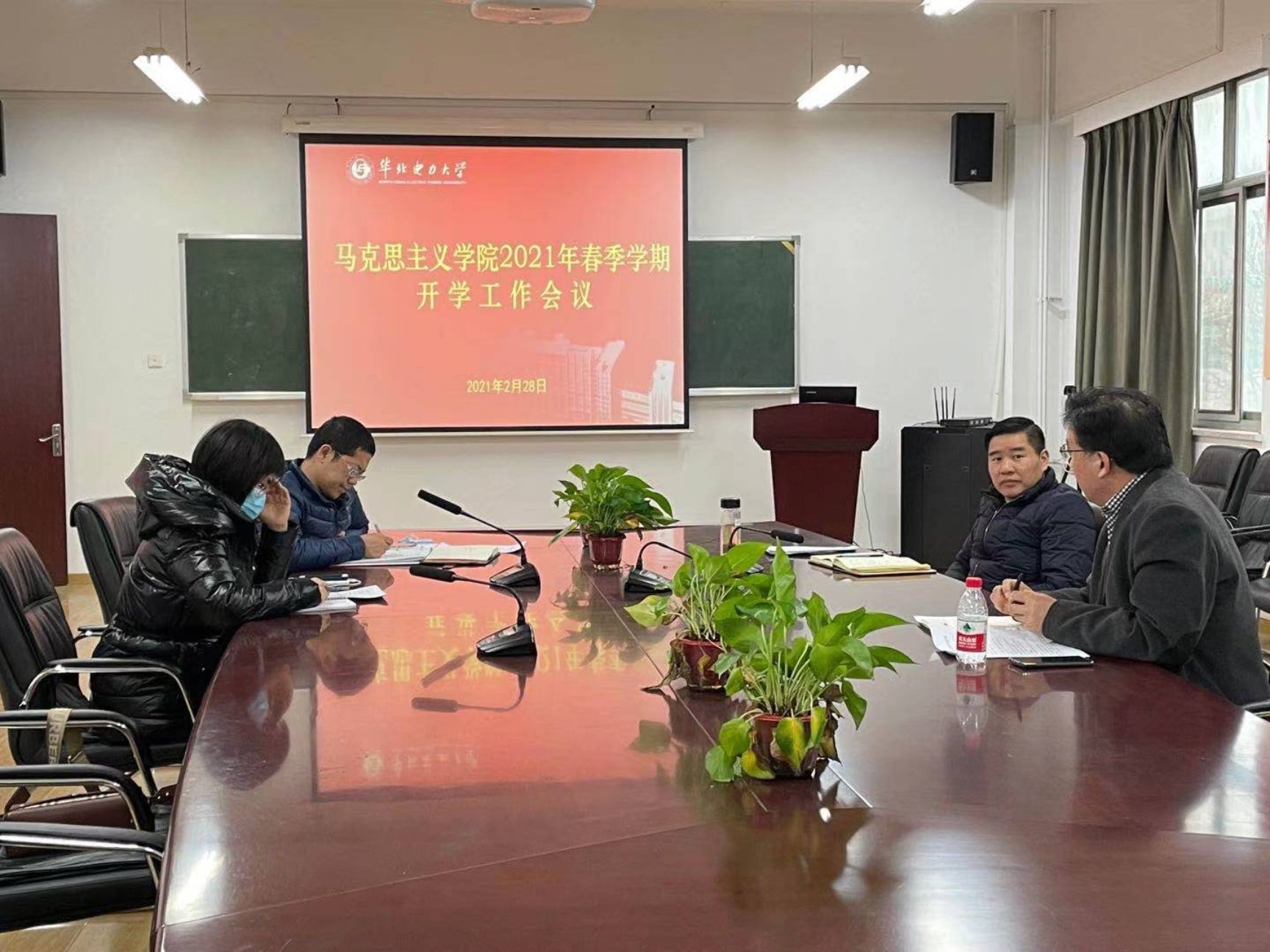 2月28日下午,马克思主义学院在教三C220会议室召开2021年春季学期开学工作专题党政联席会议,安排部署新学期工作。学院党总支书记孙平、院长王伟、副院长侯丹娟,和党总支副书记武昌杰参加会议,会议由王伟主持。