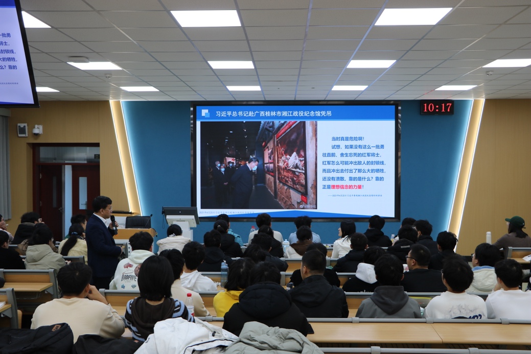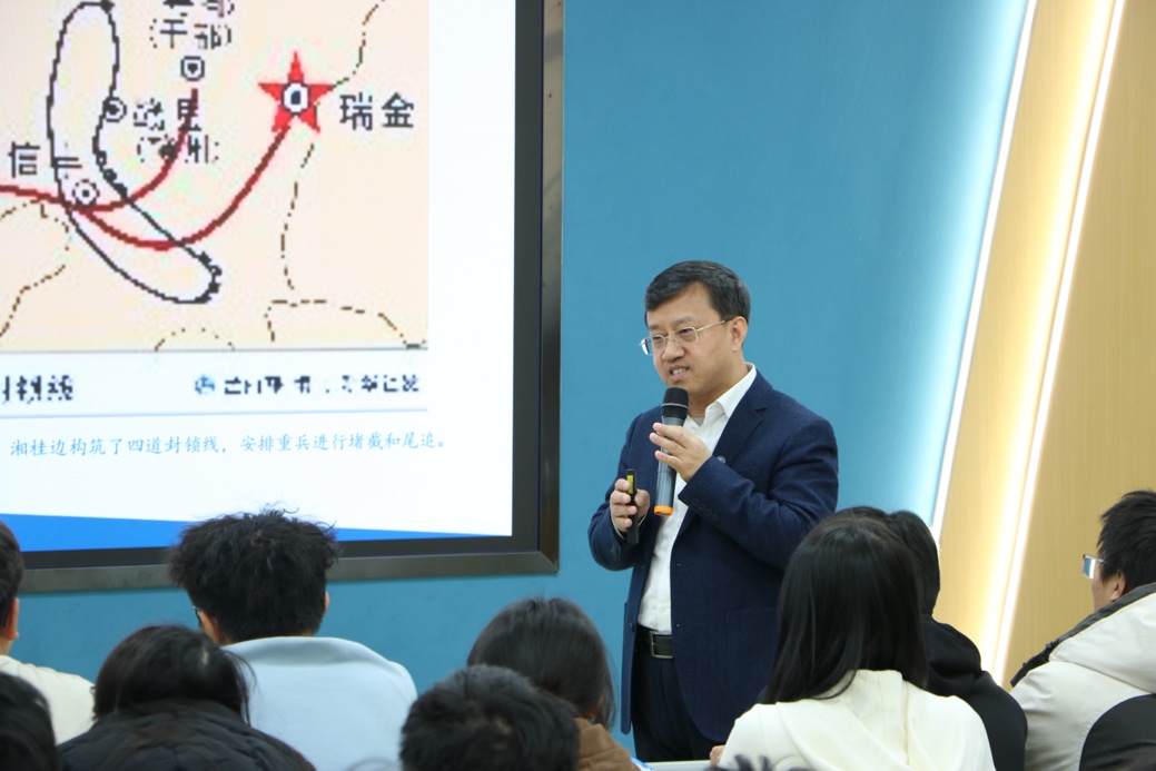 为深入学习贯彻习近平总书记关于思政课建设的重要论述和指示精神,全面落实立德树人根本任务,校党委书记汪庆华于11月27日走进《中国近现代史纲要》课堂,以“红军长征与遵义会议”为主题,为学生讲授了一堂学理透彻、鲜活生动的思政课。