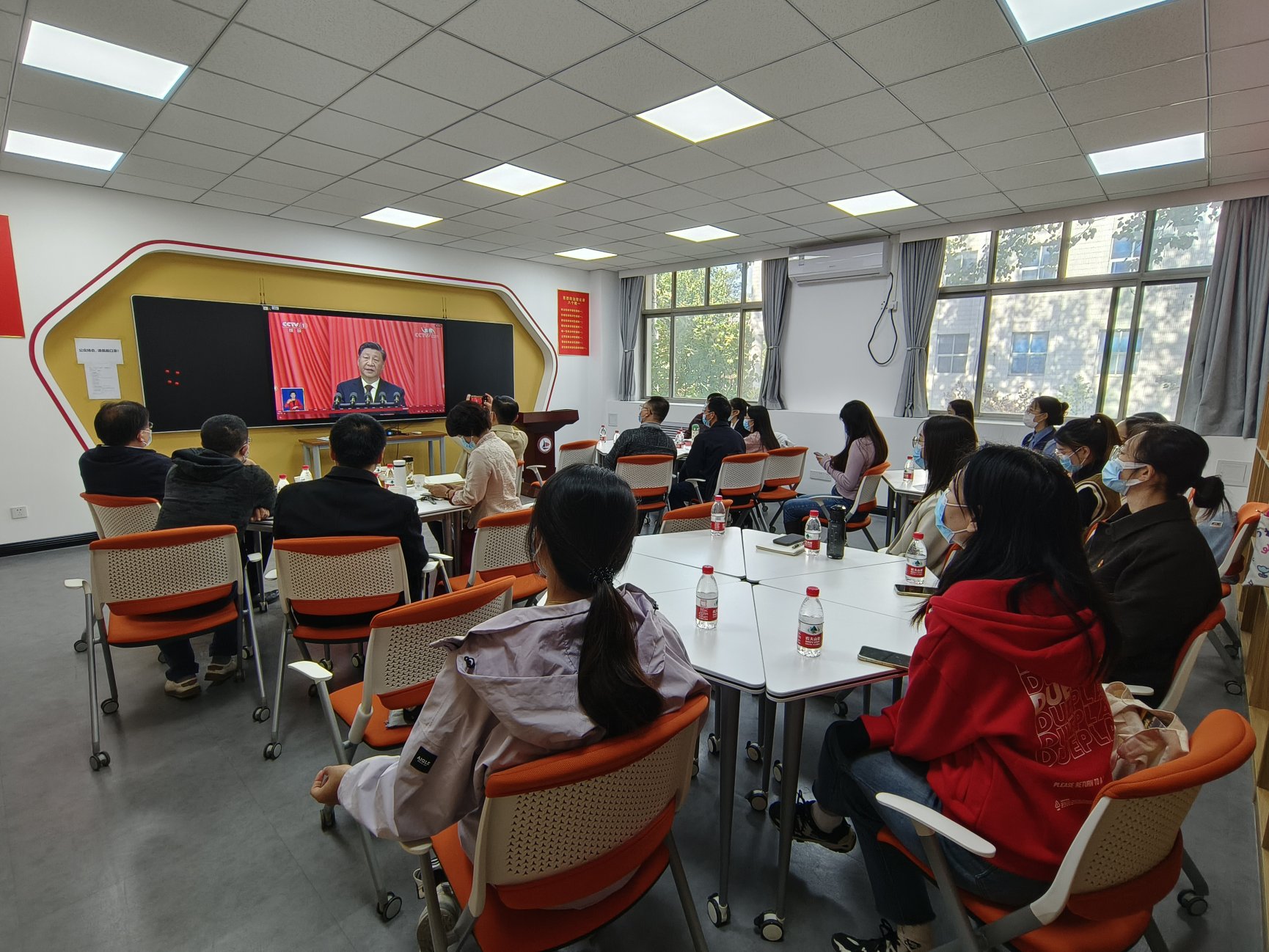 10月16日上午10时,中国共产党第二十次全国代表大会在人民大会堂隆重开幕。马克思主义学院党总支组织班子成员、党总支委员、教工党支部书记代表、教研室主任代表、科研平台负责人代表、学生代表在学院智慧图书室和学院会议室集体收看开幕会直播,认真聆听并专题学习习近平总书记代表党的第十九届中央委员会向大会所作的报告。学院党总支书记孙平主持会议。