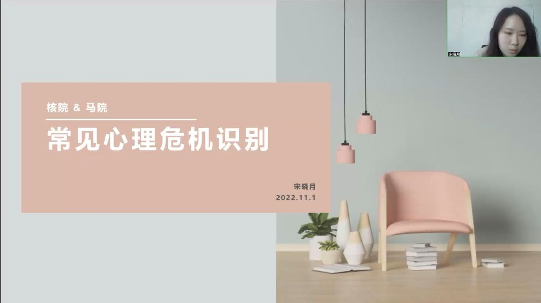 为贯彻落实习近平关于新时代高等教育的重要思想,有效预防各类心理健康问题,帮助大学生树立心理健康意识,11月1日下午,华北电力大学心理健康教育中心对马克思主义学院和核科学与工程学院统一开展心理危机识别培训活动,活动由华北电力大学心理健康教育中心助教宋晓月主持,各学院的心理委员以及宿舍长参加培训会议。
