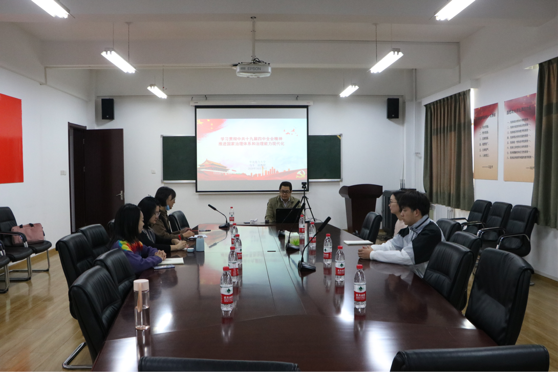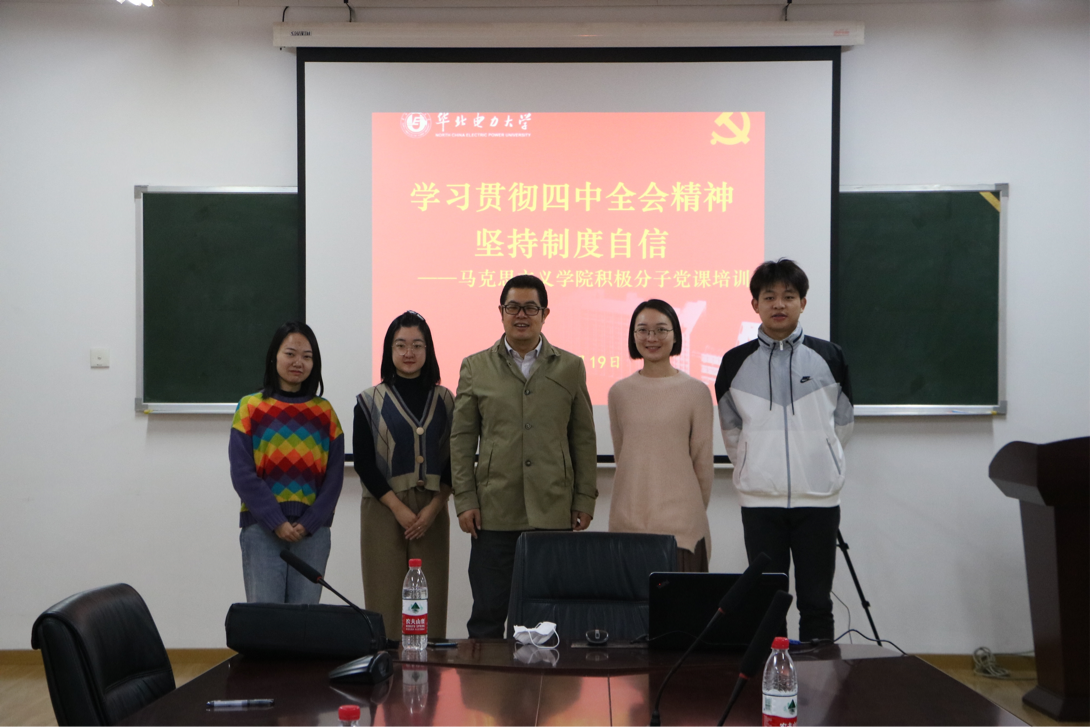 10月19日上午,马克思主义学院在教三C220开展入党积极分子党课培训活动。特别邀请到外国语学院党委副书记马冬老师作题为《学习贯彻中共十九届四中全会精神,推进国家治理体系和治理能力现代化》的讲座。本次活动由院研究生党支部书记刘彩霞主持,全体入党积极分子参加。