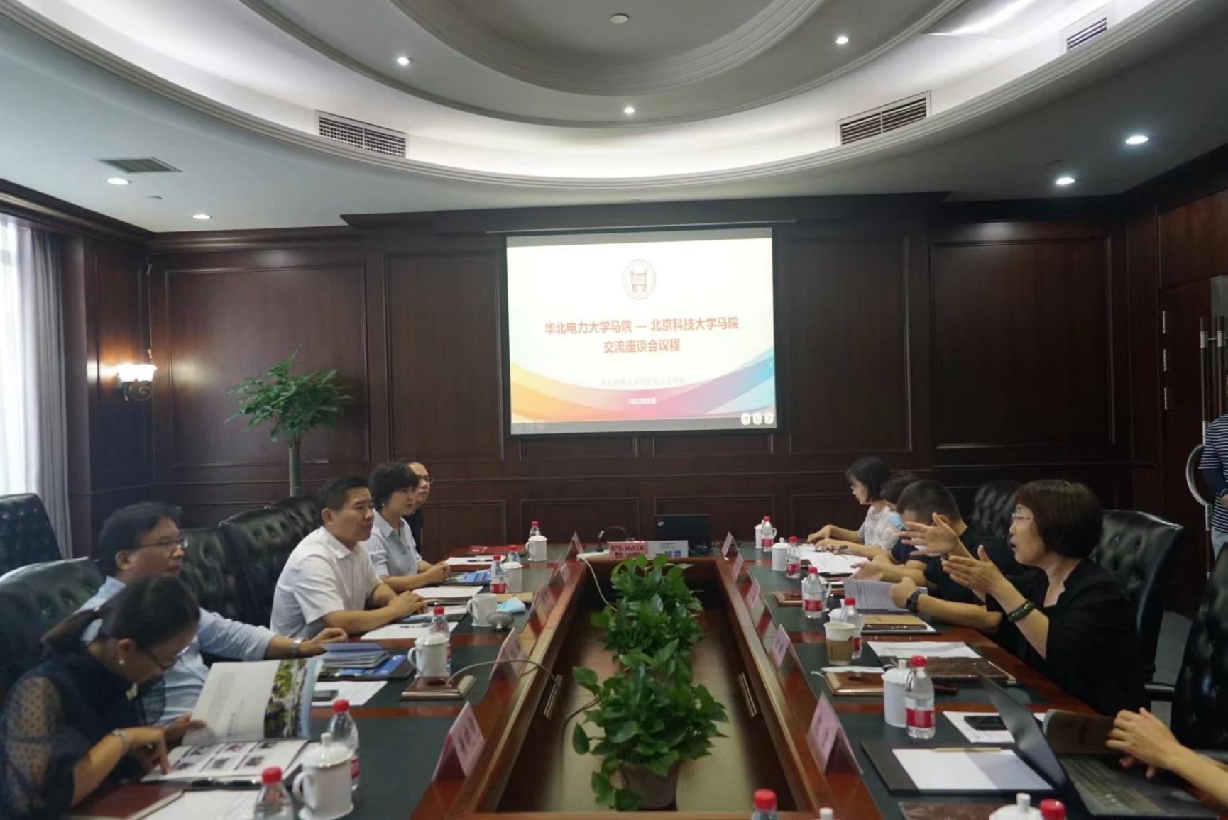 为进一步贯彻落实习近平总书记关于思政课建设的系列重要指示精神,切实推进马克思主义学院内涵式高质量发展,以优异的成绩喜迎党的二十大召开。9月16日,马克思主义学院赴北京科技大学马克思主义学院调研访谈。访谈由党总支书记孙平、院长王伟带队,教研室党支部书记、教研室主任和教授代表等一行6人参加。北科大马克思主义学院党委书记张颖、院长宋伟等人参加访谈会。