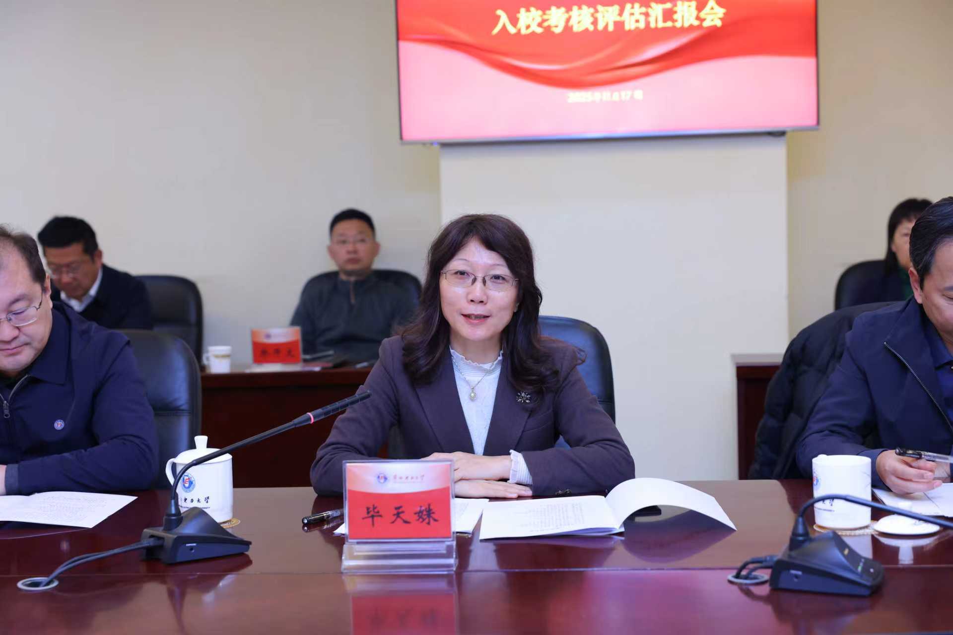 在汇报环节,毕天姝代表学校进行了汇报。毕天姝指出,学校党委高度重视马克思主义学院建设,积极贯彻落实党中央、教育部和北京市关于马克思主义学院建设的任务部署。自获批北京市重点建设马院以来,学校党委在领导管理及相关保障方面,着眼顶层设计,确保效果优先,通过“三个加强、四个聚焦、三个强化”等举措,有效推动了马克思主义学院内涵式发展。下一步,学校党委将进一步深入学习贯彻习近平总书记关于思政课建设和马院建设的系列重要讲话和指示批示精神,认真对标对表党中央部署和教育强国建设要求,进一步提高办好重点马院的政治站位,进一步增强办好思政课的政治定力。进一步深化思政课改革创新,切实发挥好思政课作为落实立德树人根本任务的关键课程作用。进一步准确把握马克思主义学院建设新形势新任务,加强顶层设计,强化对马克思主义学院建设的支持力度,推动马院与思政课建设高质量发展,奋力书写“教育强国、华电有为”的崭新篇章。