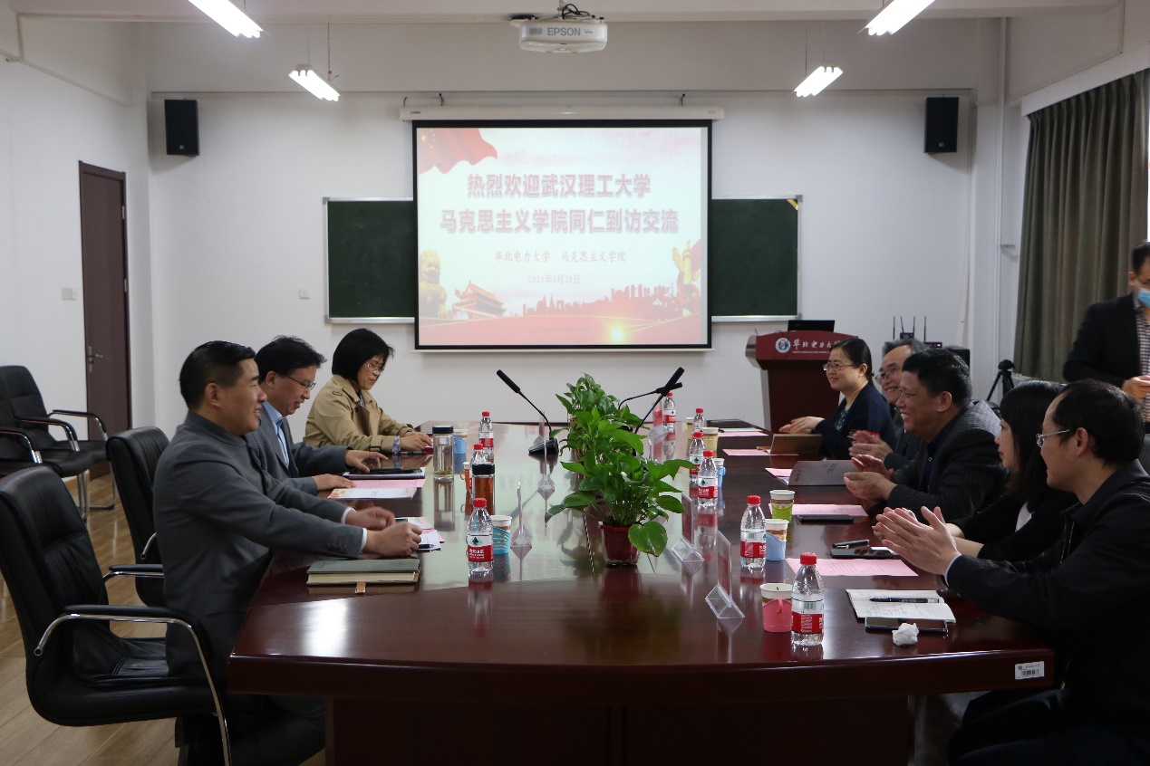 2021年4月28日上午,武汉理工大学马克思主义学院王盛开副院长一行到我院考察交流。学院党总支书记孙平、院长王伟和副院长侯丹娟与客人在教三C220会议室进行交流座谈,共同探讨马克思主义理论学科建设的相关问题。会议由侯丹娟主持。