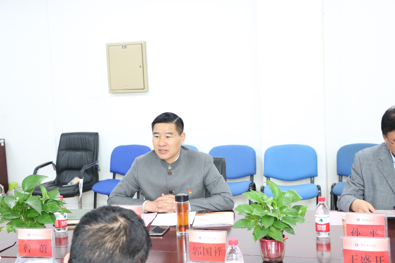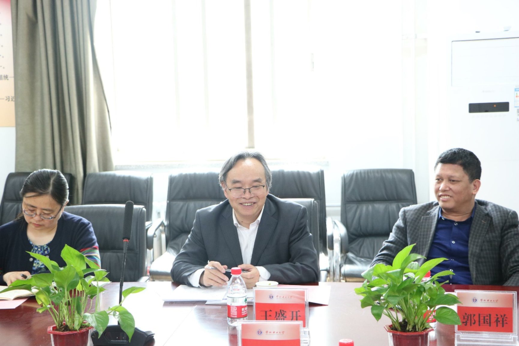 王盛开对我院的热情接待表示感谢,对我院近年来在各方面的积极探索表现出浓厚兴趣,并简要介绍了武汉理工大学的基本情况,详细说明了武汉理工大学马克思主义学院在学科建设、思政课教学方面已经取得的成绩及正在开展的工作。