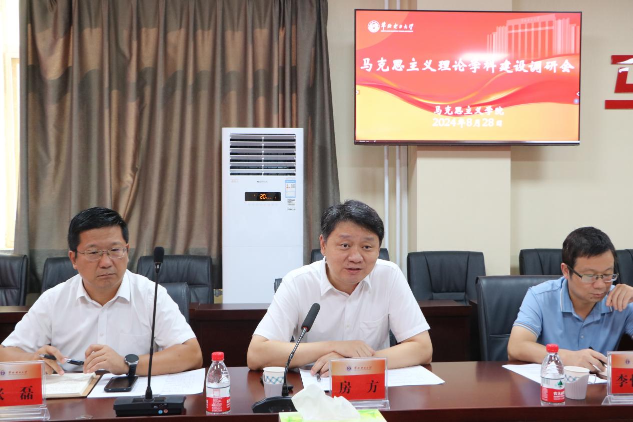 房方在调研中充分肯定了近年来学校马克思主义理论学科建设取得的成绩,并就推进马克思主义理论学科建设提出指导意见。房方指出,中共中央办公厅印发的《关于加强新时代马克思主义学院建设的意见》明确提出,加强马克思主义理论学科建设,把准学科定位方向,充分发挥马克思主义理论学科引领作用。我校作为教育部直属高校中唯一一所以能源电力为办学特色的“双一流”建设高校,我校马克思主义理论学科肩负着为能源电力行业铸魂育人的重要任务,要紧密结合学校学科优势,打造具有鲜明能源电力行业特色的马克思主义理论学科。房方要求,马克思主义学院要把博士点申报作为当前学院工作的首要任务,要对标对表博士点申报条件和各项要求,立足学校实际,找准差距,补短板、强弱项,着力挖掘并发挥自身优势,整合校内校外资源,形成工作合力,全力推进学科建设勇攀高峰。