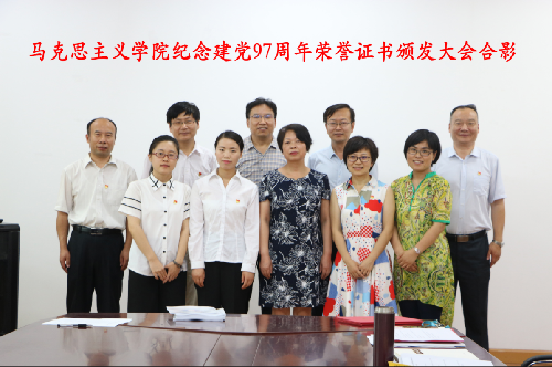 7月3日上午,马克思主义学院纪念建党97周年荣誉证书颁发大会在教三A111举行,会议由党总支委员侯丹娟主持。