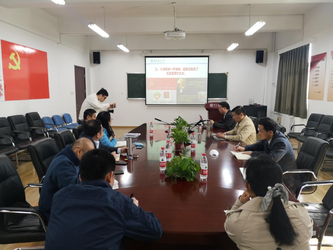 为深入贯彻落实习近平总书记在党史学习教育动员大会上的重要讲话精神,进一步提高政治站位,高标准、高质量开展党史学习教育,4月13日上午,马克思主义学院理论学习中心组举行“中国共产党的创立”专题学习(扩大)会议。马克思主义学院党总支书记孙平作题为《中国共产党的创立》讲座,学院班子成员、各教师党支部书记、各教研室主任、各科研平台负责人参加会议。本次会议由学院院长王伟主持。