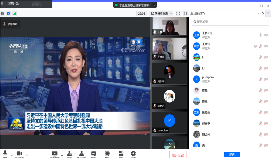 5月10日中午,马克思主义学院形势与政策党支部和能源动力与机械工程学院工程热物理党支部在线上开展共建联学活动,主题为学习总书记视察人民大学重要讲话精神,两个党支部近30名教师参加,会议由工程热物理党支部书记王晓东、形势与政策党支部书记王梦共同主持。